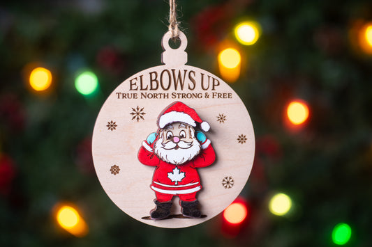 Elbows Up - True North Strong & Free Santa Christmas Ornament