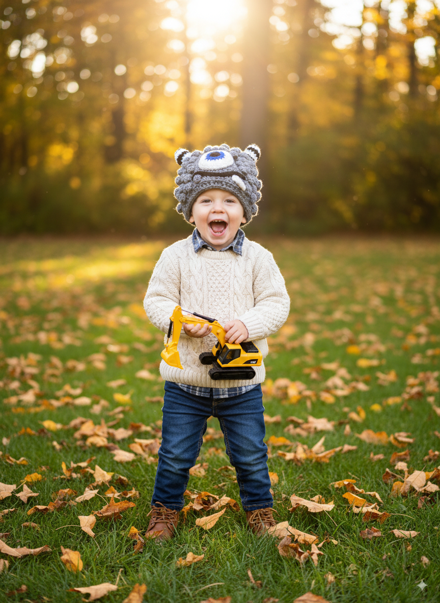 In-Stock 1-3 Year Little Monster in Silver Grey with Electric Blue Eye