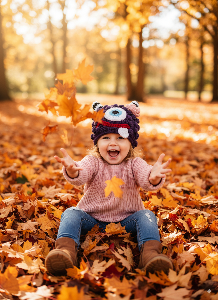 Our 'Little Monster' Hat is a favourite with the little ones that stop by my studio or visit us at shows. The main body of this hat is done with a bobble stitch, in the colour of your choice, that gives it a great bumpy texture. One large eyeball is framed by two striped horns on the top of it's head and a curvy little mouth with his/her tongue stuck out. The horns are filled with poly-fill that makes them nice and sturdy.