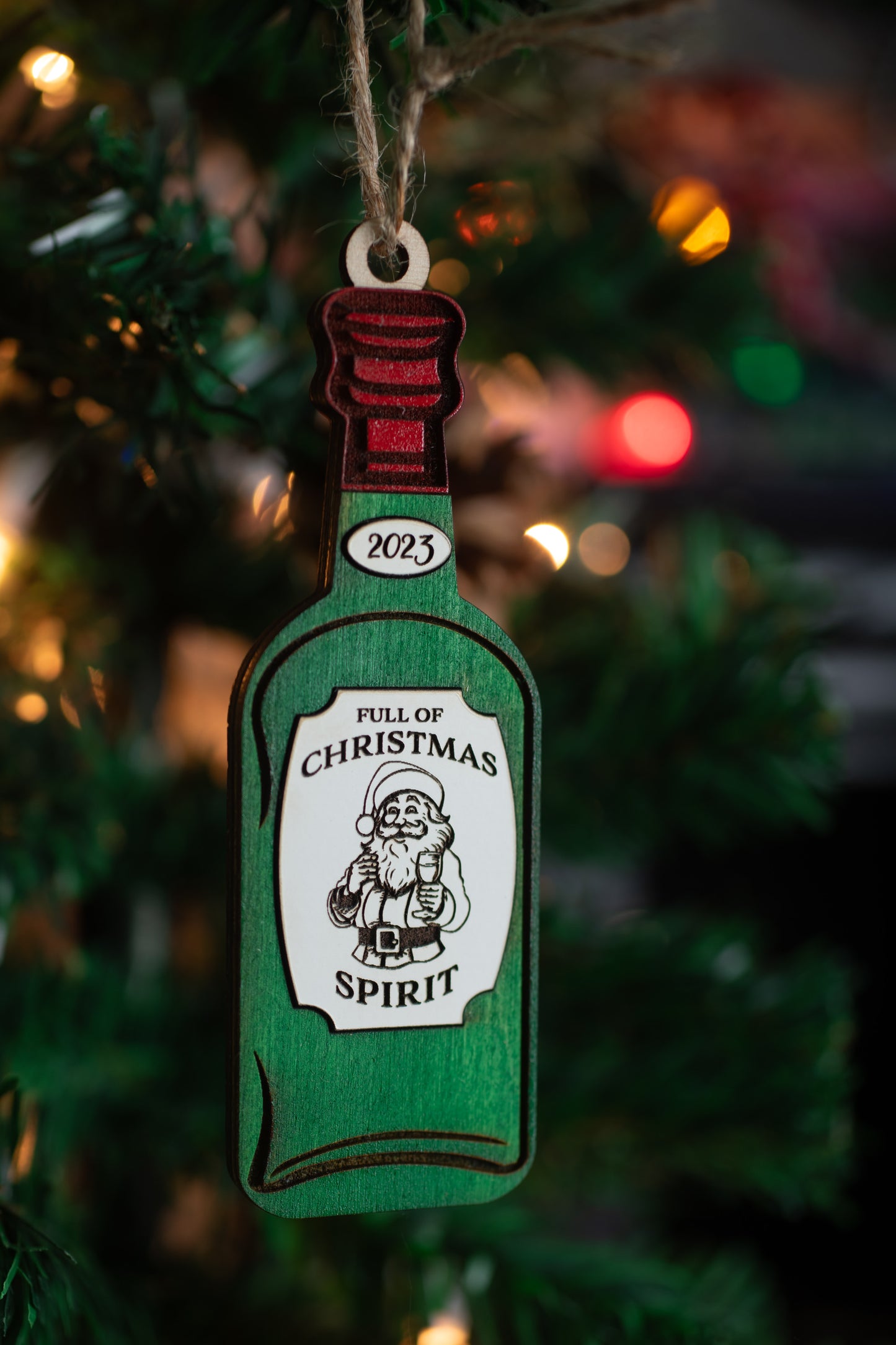 Add a touch of humour to your tree this Christmas with our Multi-Layered Full of Christmas Spirit Wine Bottle Christmas Ornament.