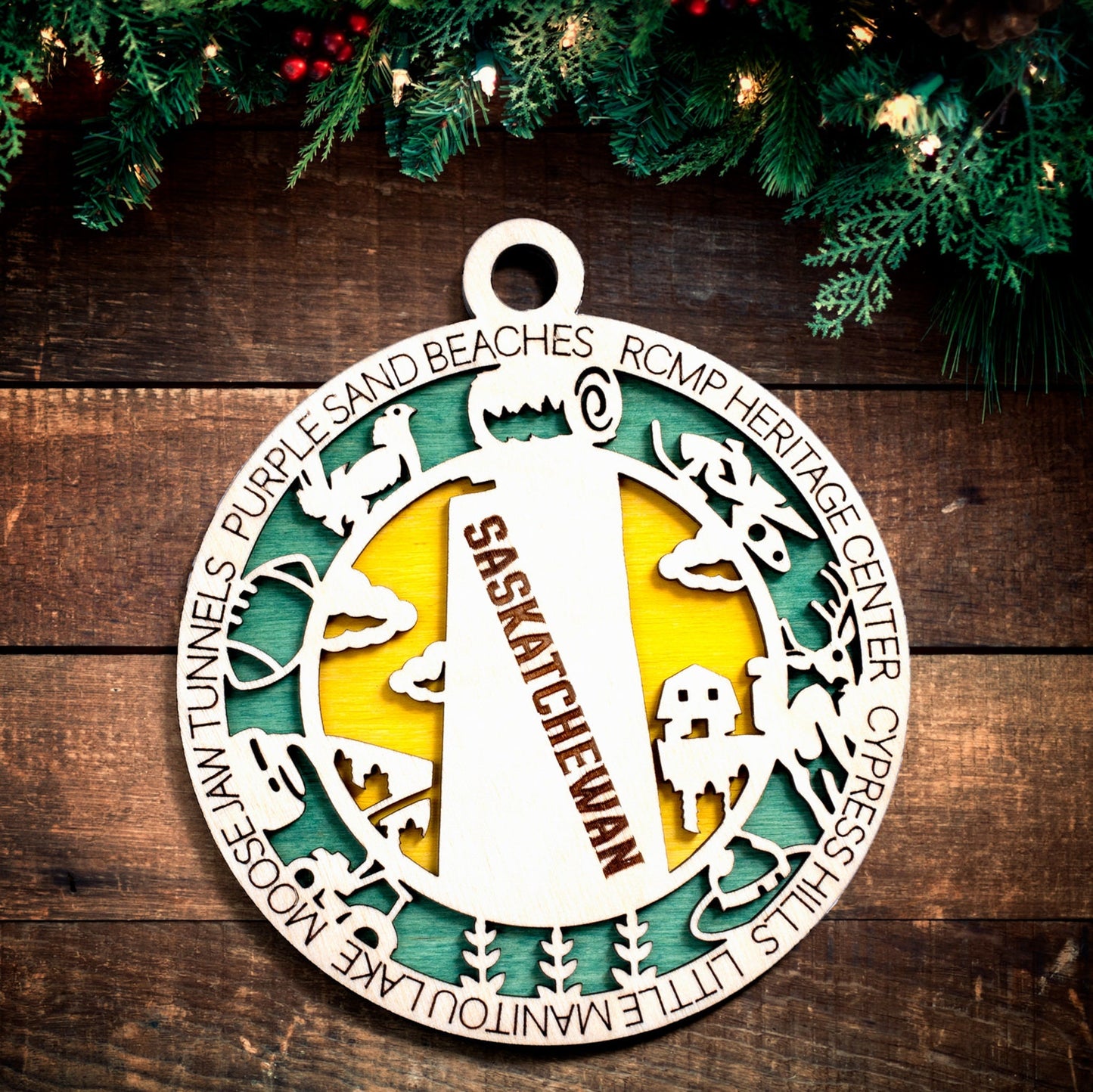 Share some hometown pride this Holiday Season with a hand crafted Canadian territory or provincial ornament that showcases what your province has to offer with whimsical icons and words.