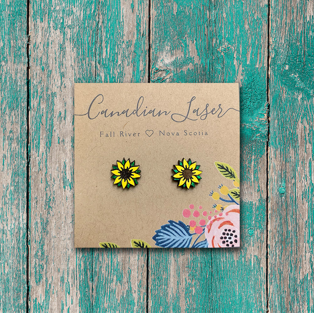 Hand Painted Wooden Studs - Sunflower