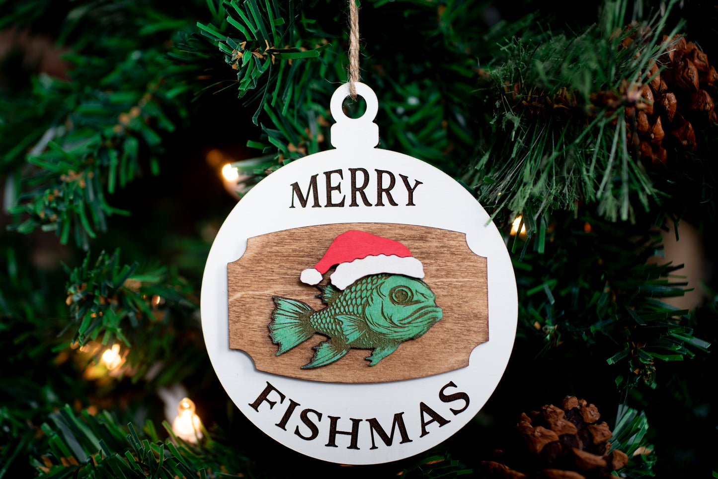 Make a splash this Christmas with our Merry Fishmas Multi-Layered Christmas Ornament.