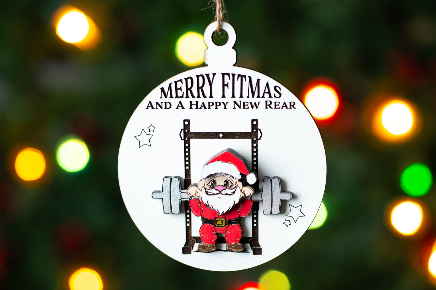 Add a touch of whimsy to your Christmas Tree this year with our Merry Fitmas and a Happy New Rear Christmas Ornament! This buff little Santa is ready to get a jump on those New Years Resolutions!
