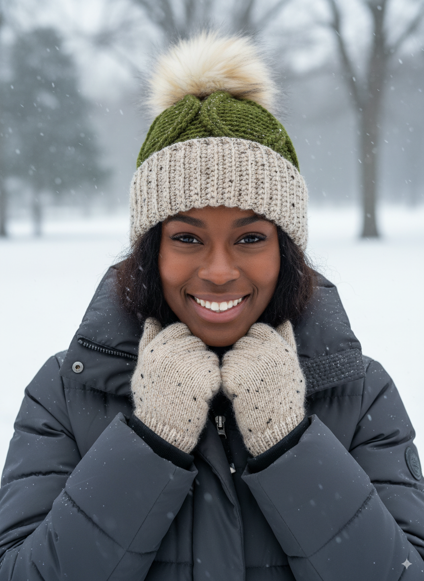 Crocheted in a unique textured pattern with double layer fold up brim around the ears, its extra warm and cozy. It's topped off with a beautiful faux fur pom pom.